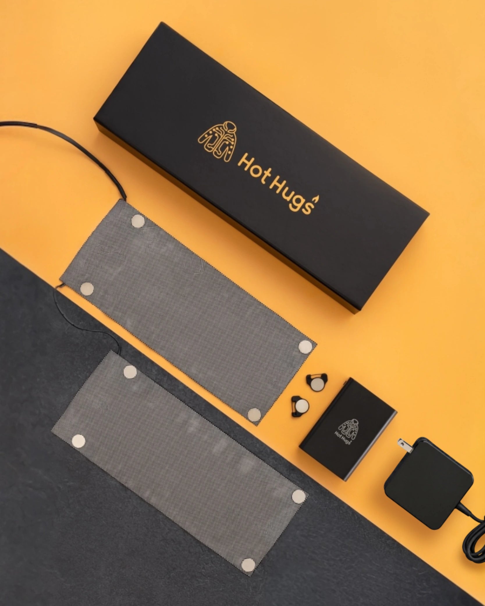 Keep your favorite jacket. Hot Hugs turns it heated and runs 3× hotter than other heated jackets. Pin the magnet mounts in your jacket, snap on the heating pads, and you’re done—so thin you’ll forget they’re there. Comes with built-in overheating protection to keep you safe.